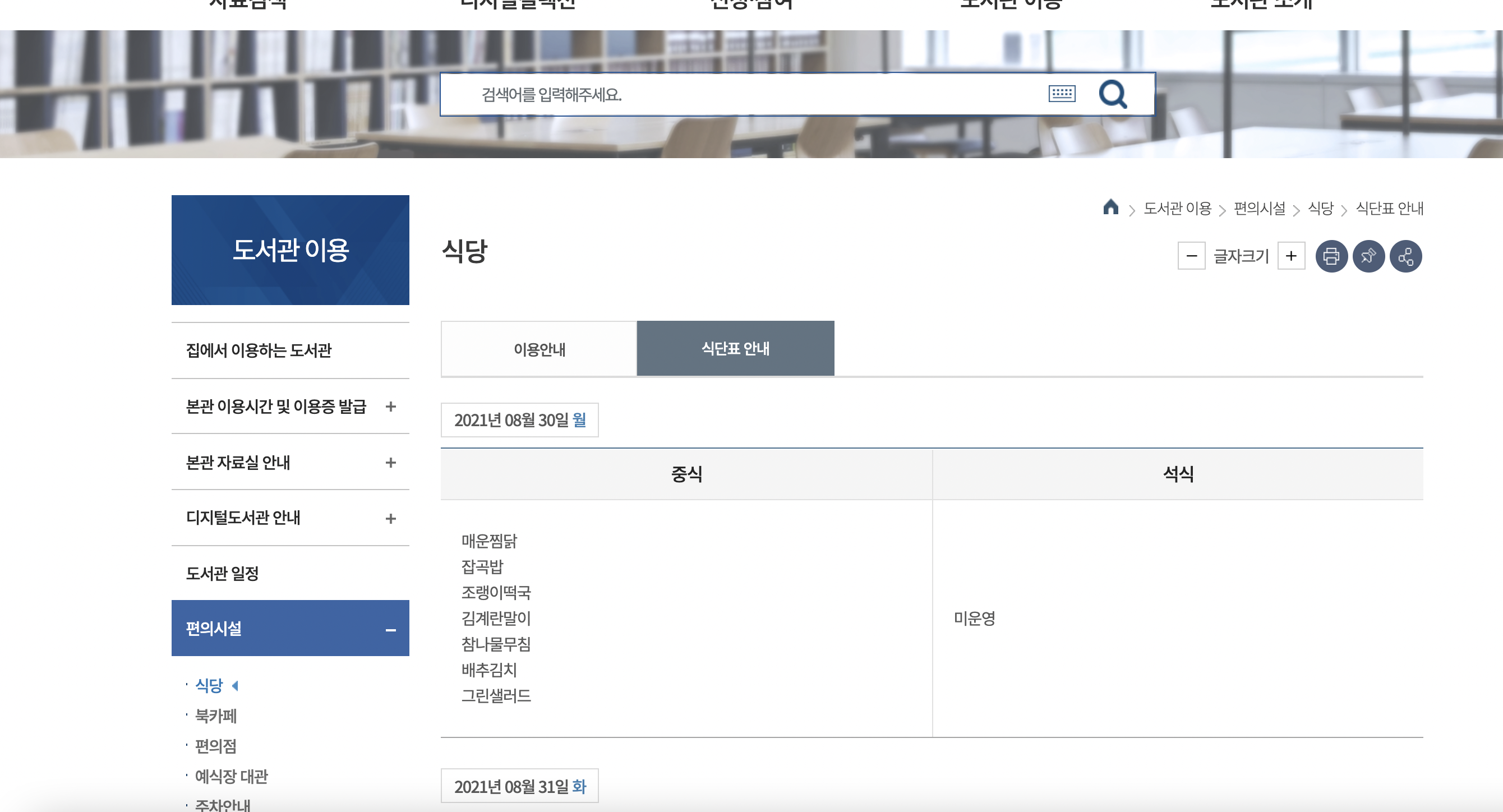 국립 중앙 도서관 식단표 사이트 알아보기