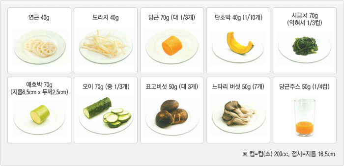 - 감자 140g(중 1개), 고구마 70g(중 1/2개)