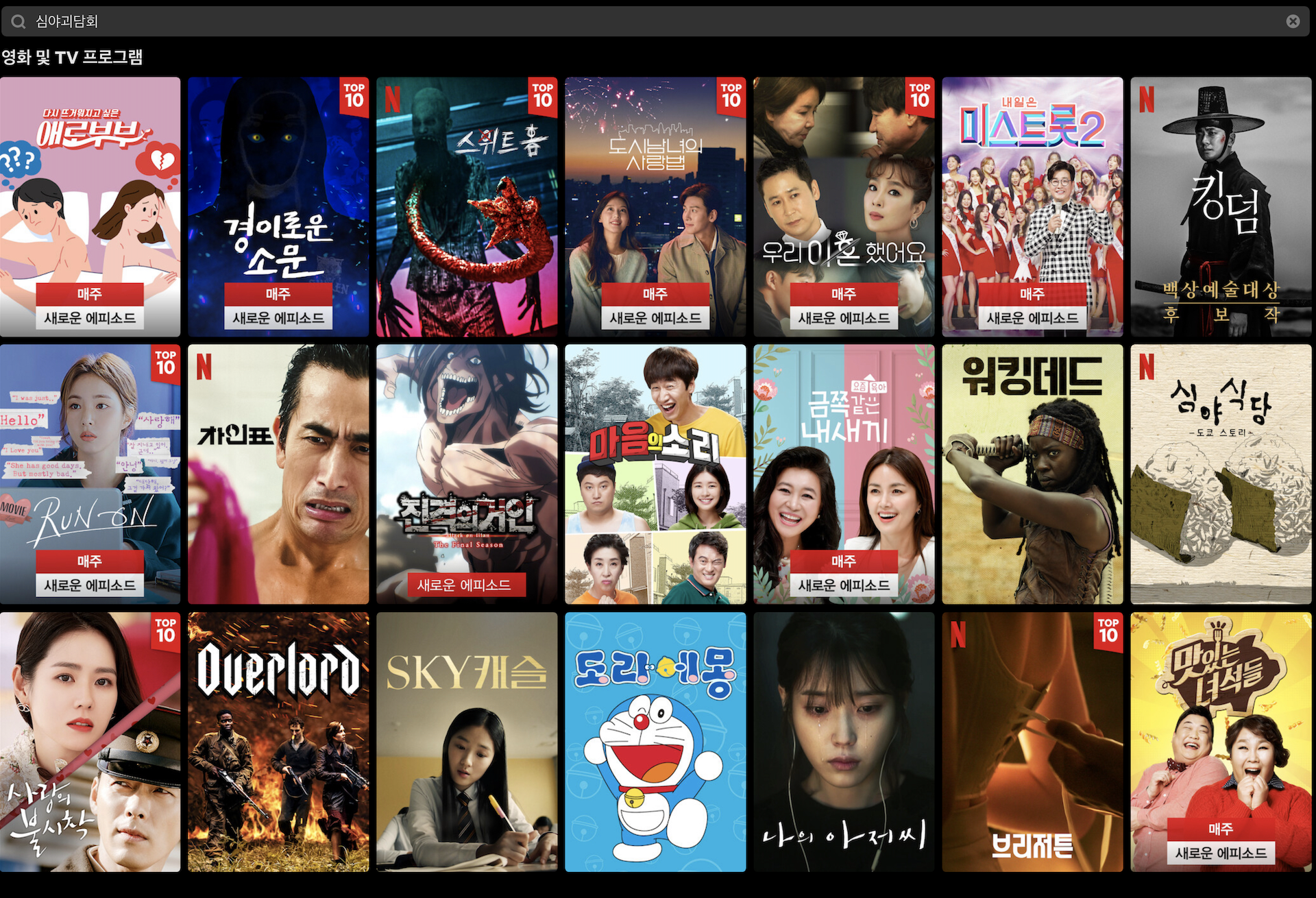 심야괴담회의 넷플릭스 검색 결과 화면입니다. 넷플릭스에서는 아직 서비스하지 않네요.