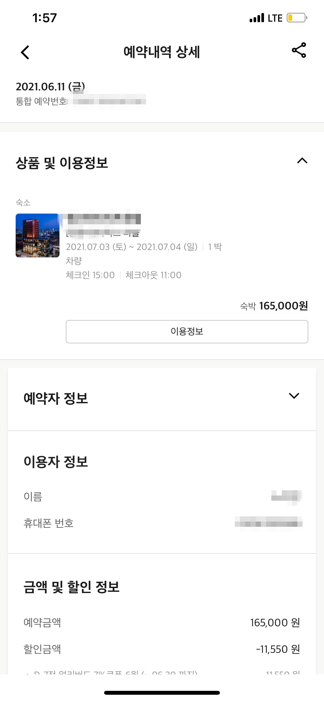 평소에 하던 것처럼 상세보기에 들어가서 호텔 예약 취소를 하려고 했죠.