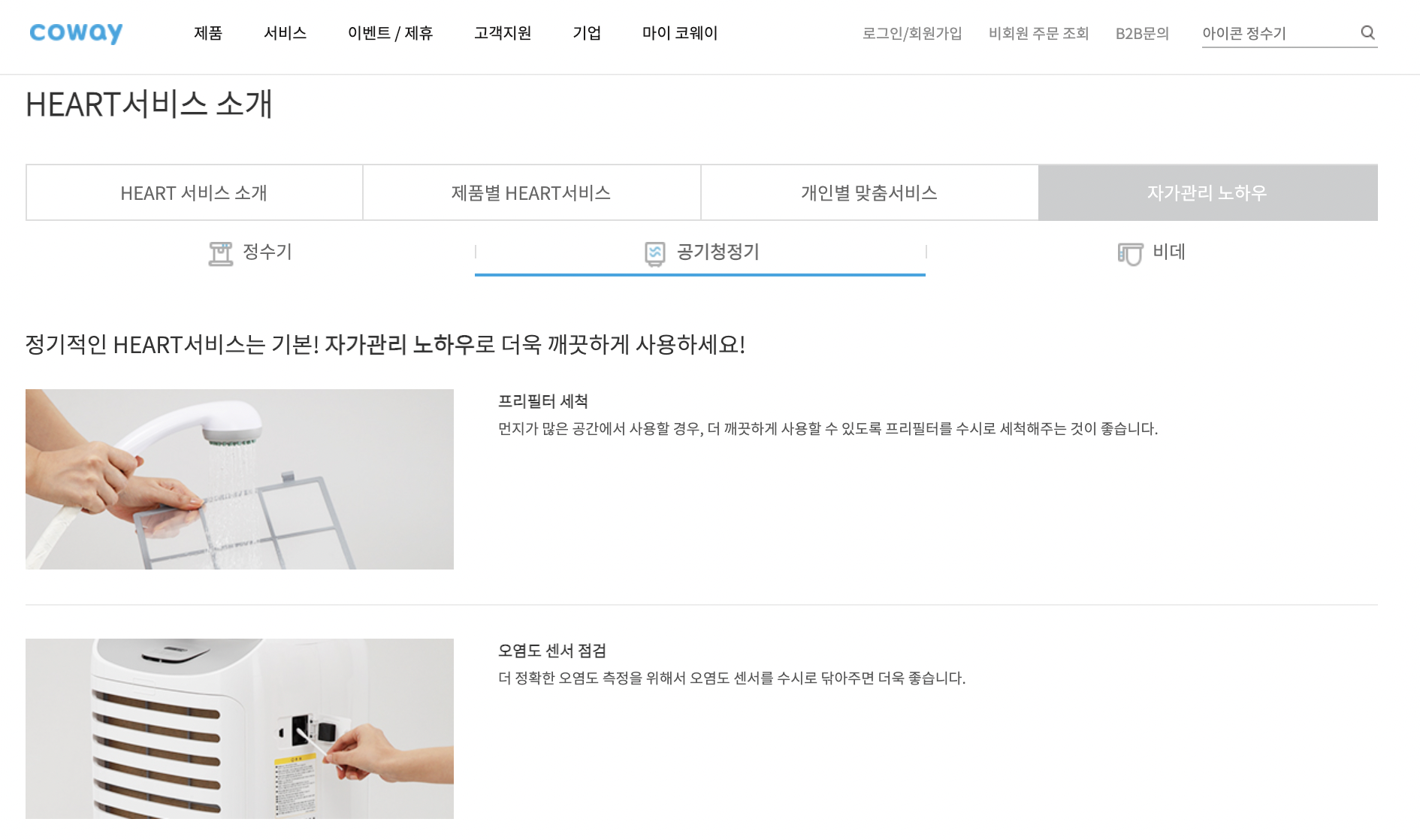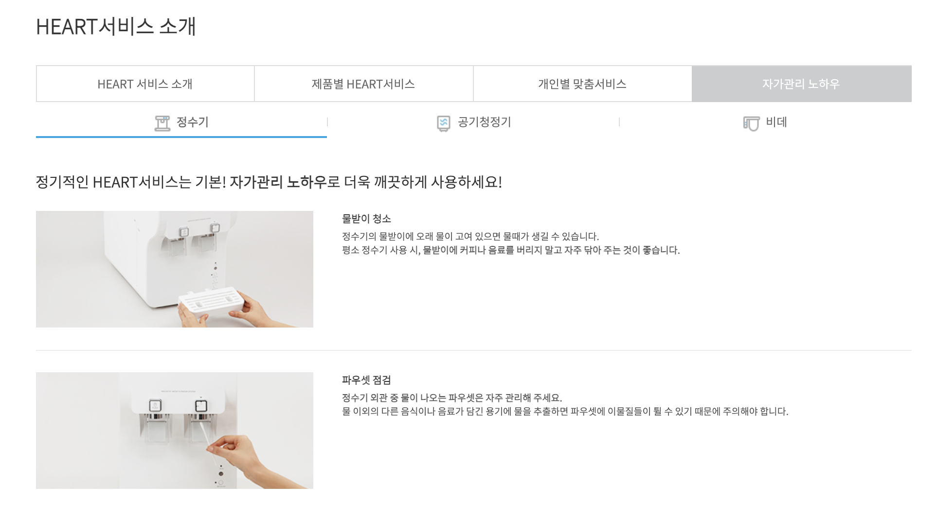 웅진코웨이 정수기, 공기청정기, 비데 자가관리 노하우