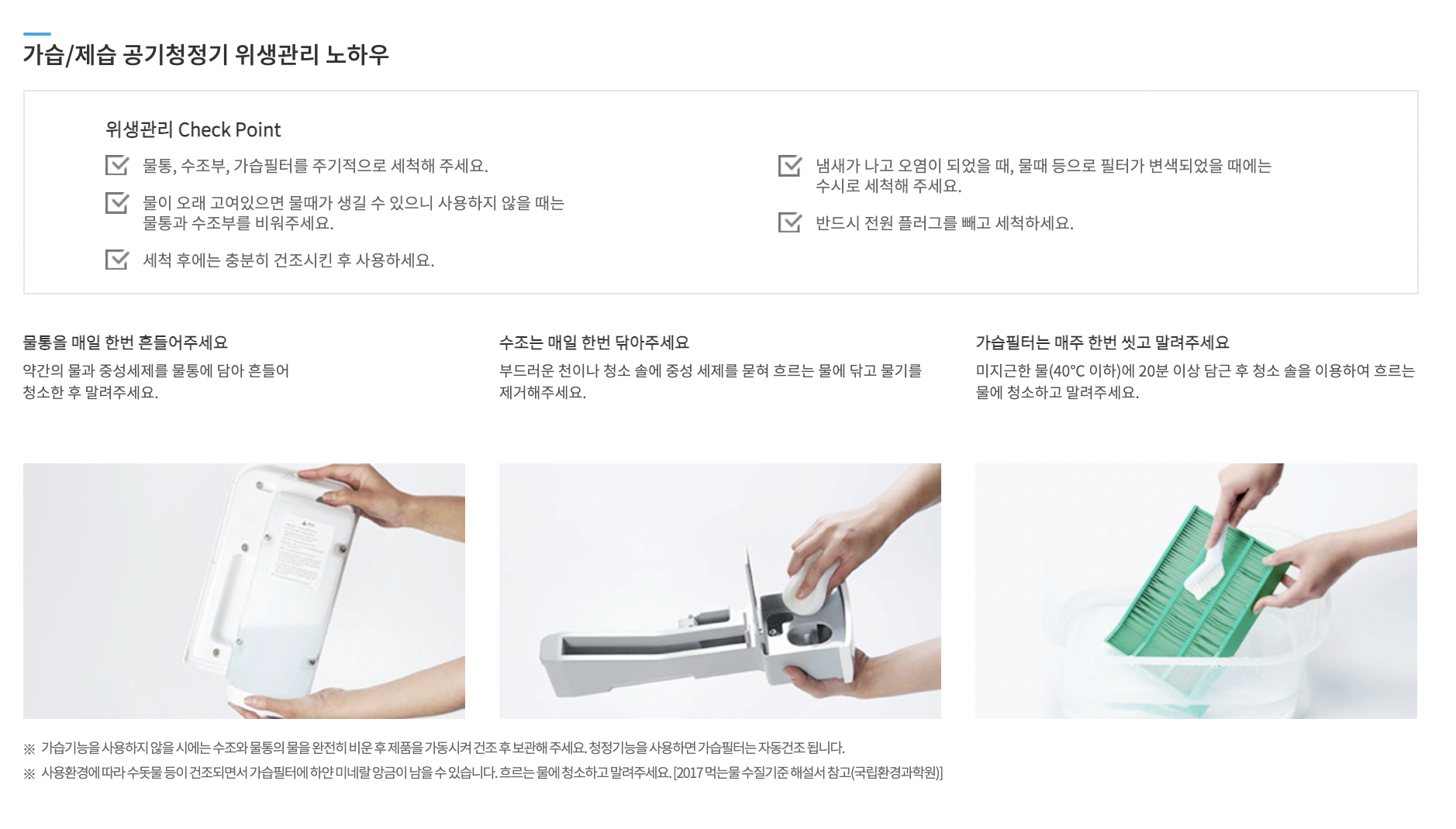 가습/제습 공기청정기 위생관리 노하우입니다.