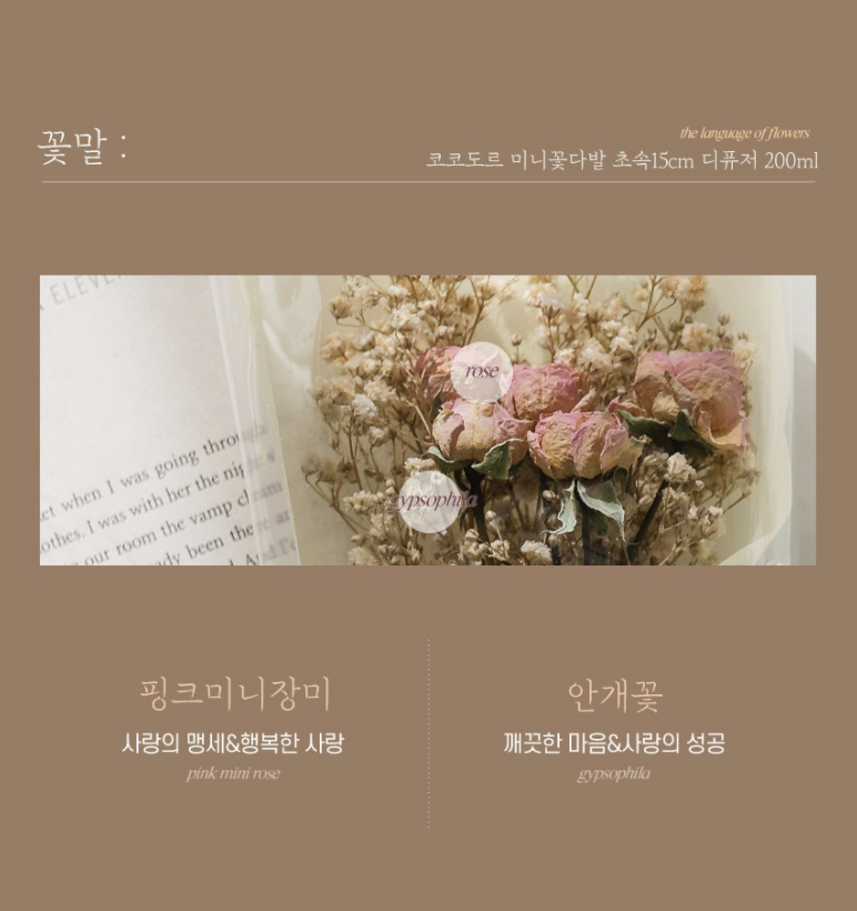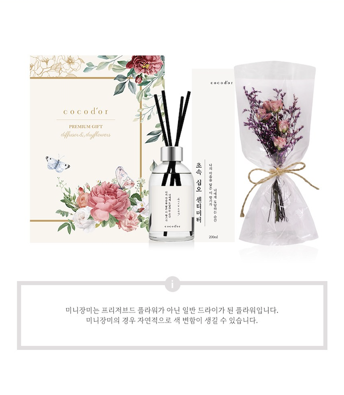 코코도르 미니꽃다발과 초속 15cm 200ml 디퓨저 세트입니다.