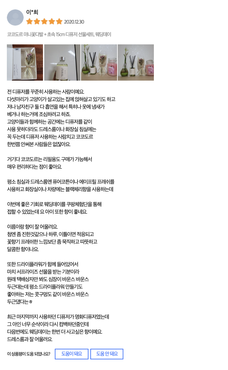 당신의 감미로운 추억의 향기를 닮은 고품질 향기 인테리어 코코도르입니다.