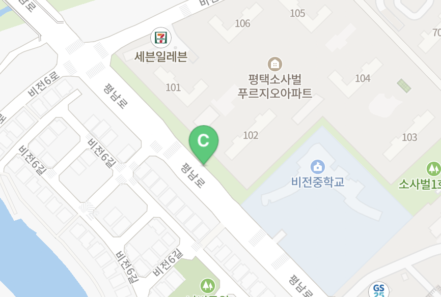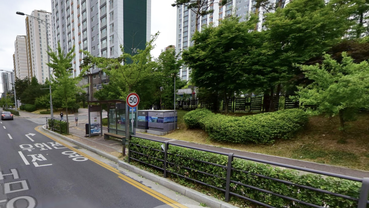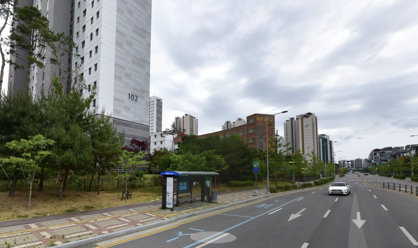 다음은 '소사벌 푸르지오APT 102동 앞 버스정류장'의 모습입니다.