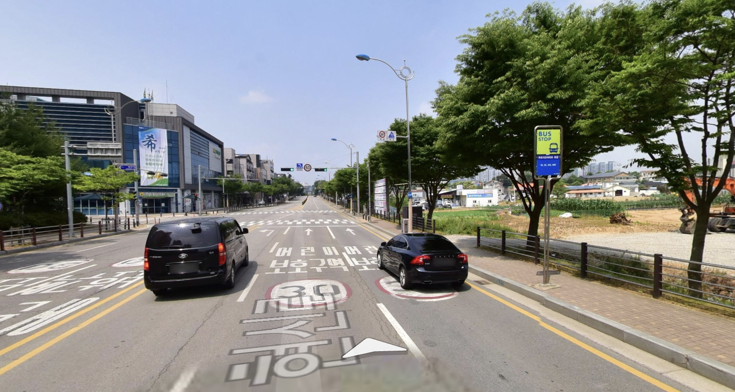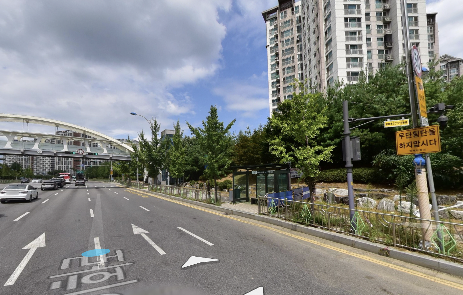 다음은 '용이동 푸르지오 APT 105동 맞은편 버스정류장' 의 모습입니다.